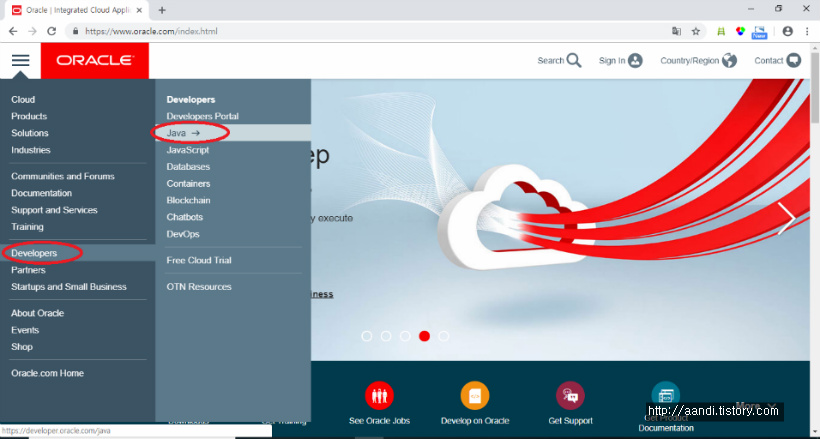 우선 오라클 사이트(www.oracle.com)로 접속합니다.