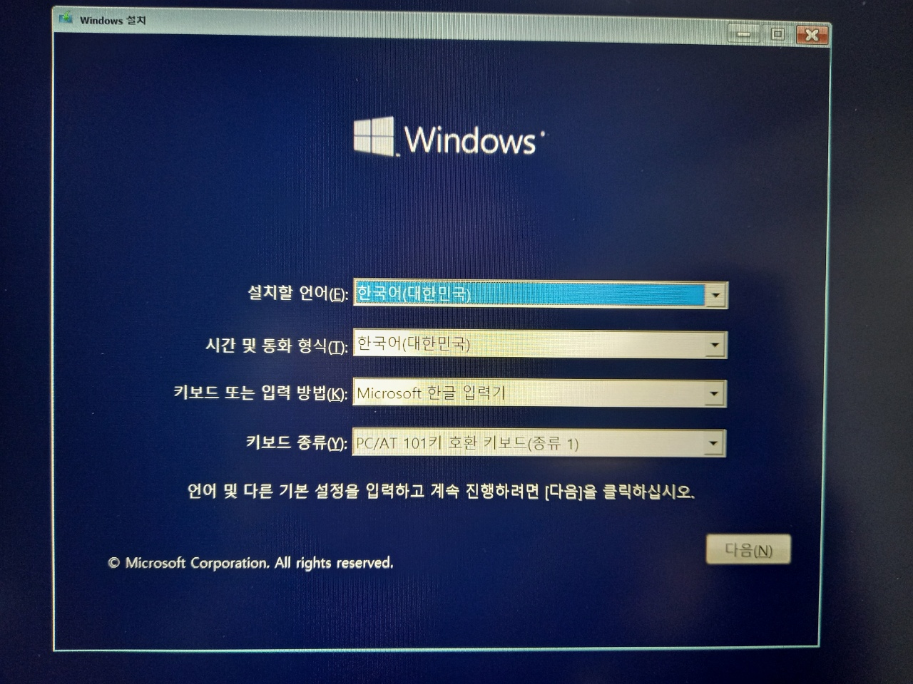 자판은 Microsoft 입력기 선택