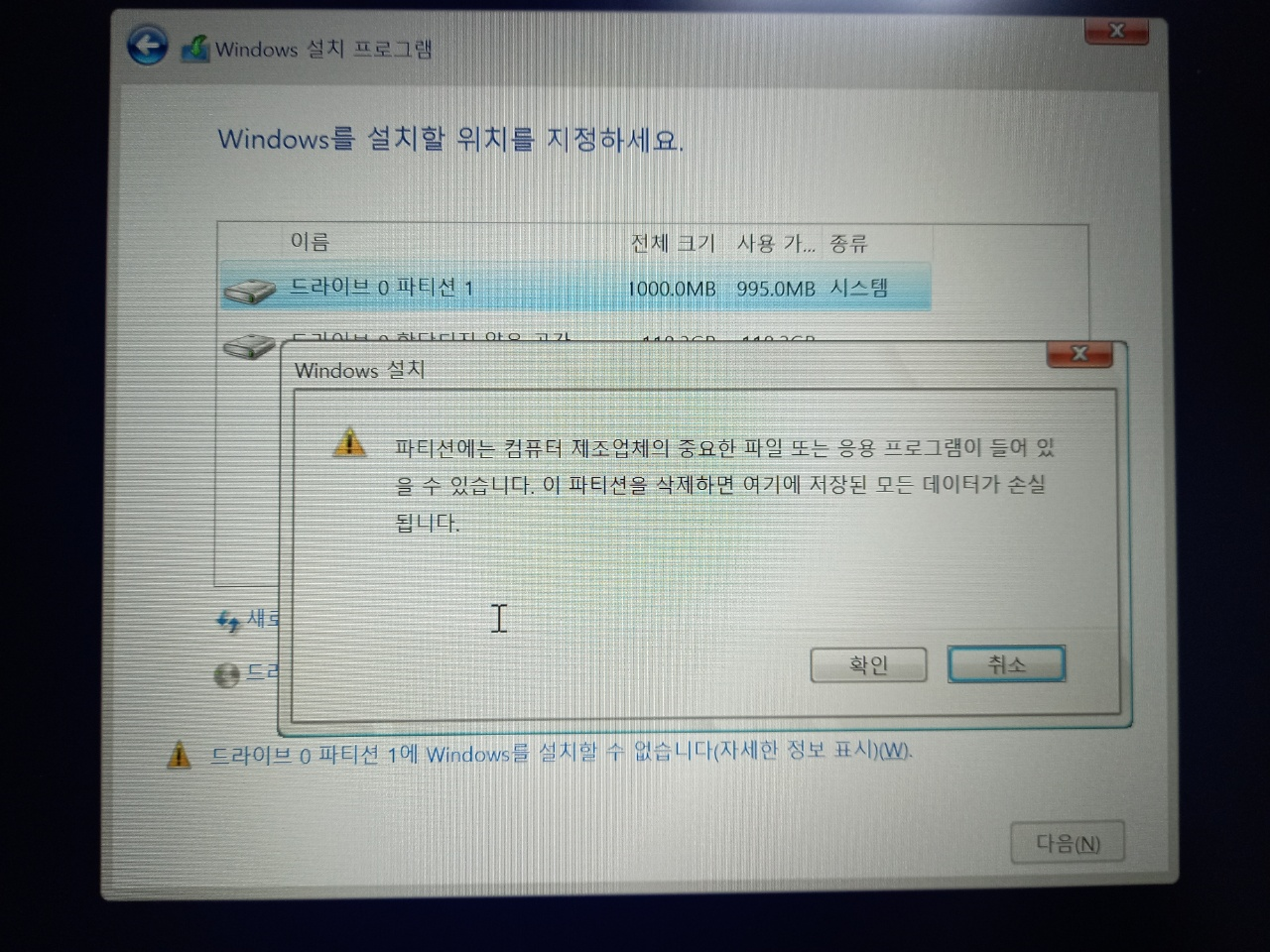 본격적으로 윈도우를 설치해보자!