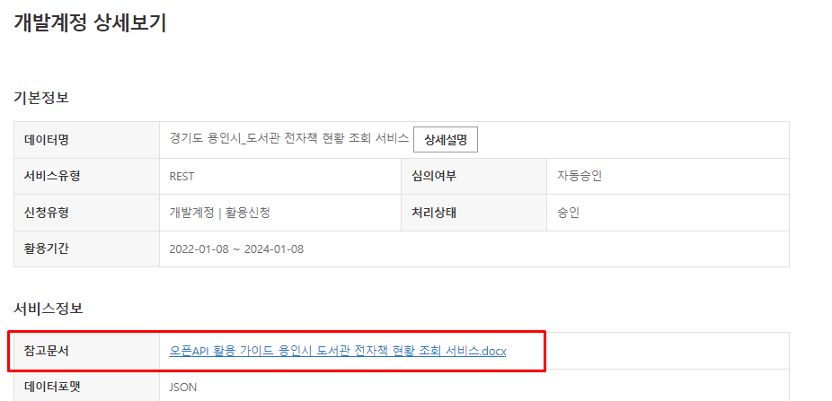승인된 OPEN API를 클릭해보니 상세 정보를 확인할 수 있었다.