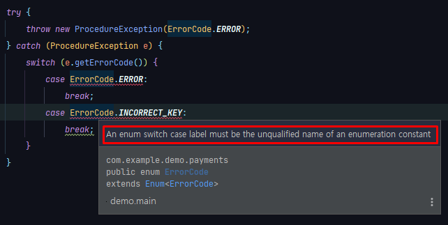 [JAVA] switch case문에서 enum class 사용 오류 본문