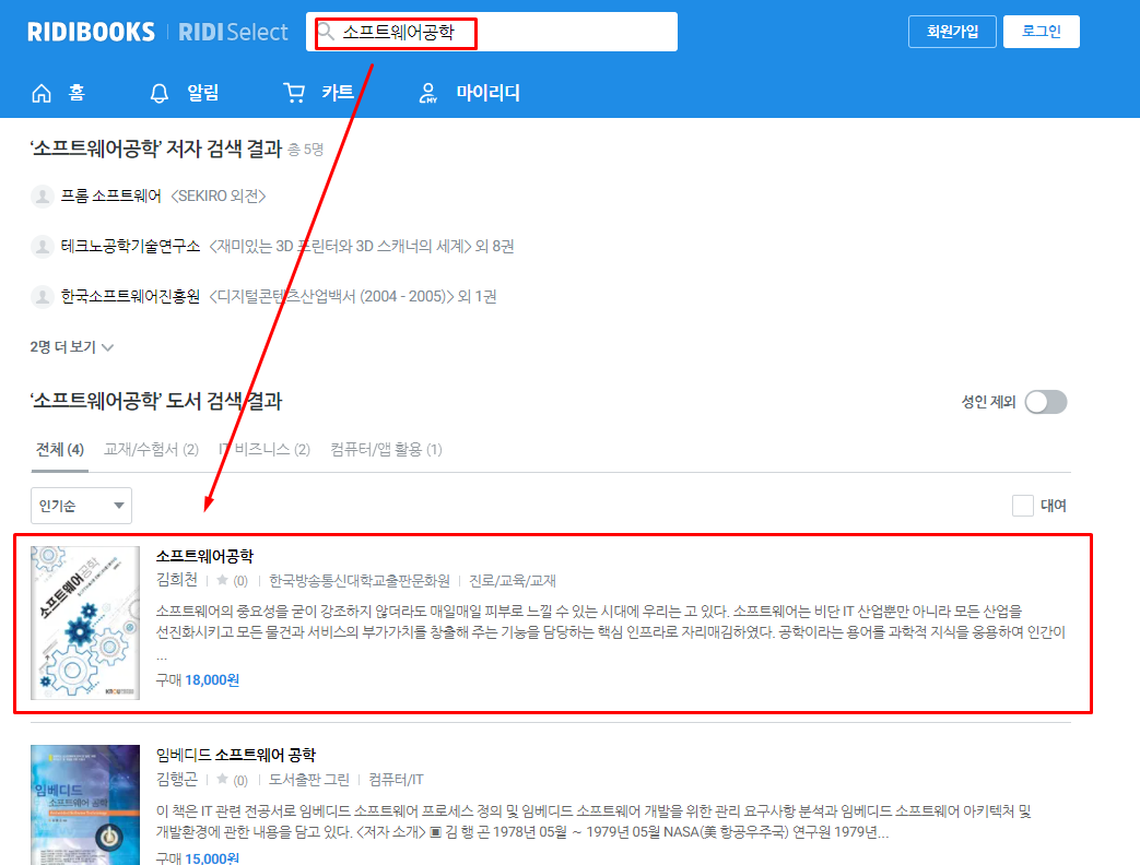 이제 리디북스에서 해당 교재를 검색한다.