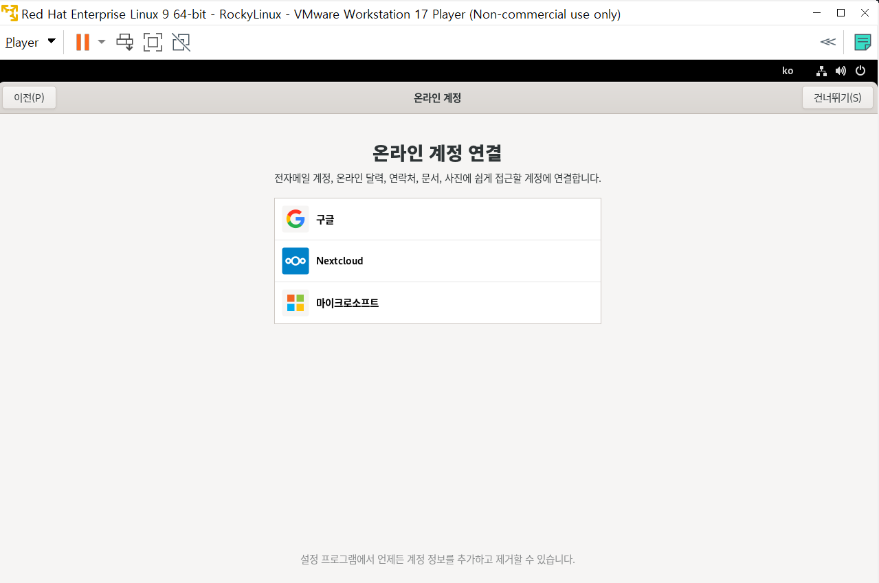 이렇게 vmware에 Rocky linux를 설치해봤습니다.