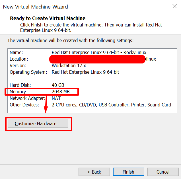 2G로 되어있는 메모리를 Customize Hardware를 클릭하여 4G로 변경합니다.