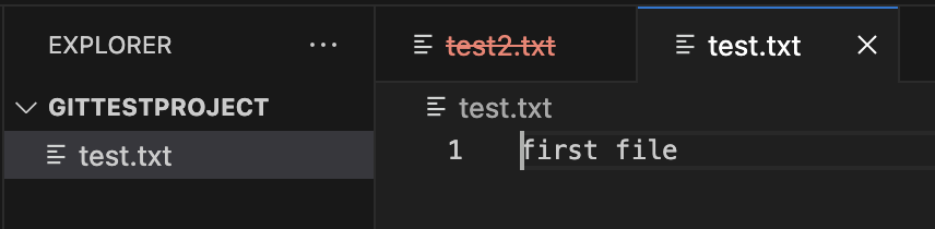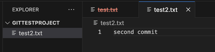 project에는 test2.txt 파일은 사라지고, test.txt 파일만 남았습니다.