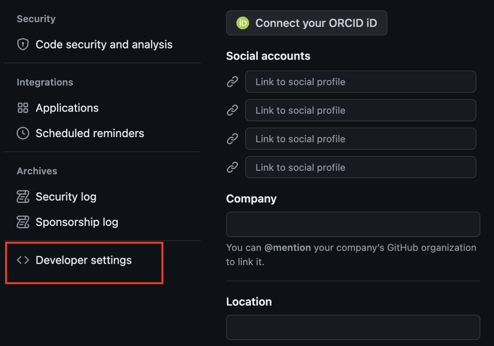 왼쪽 메뉴 제일 아래 Developer settings 클릭