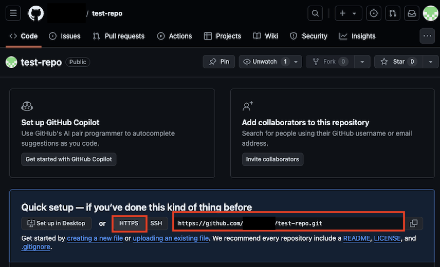 [가져오려는 repository > code] 화면에서 HTTPS가 선택된 연결 주소를 복사합니다.