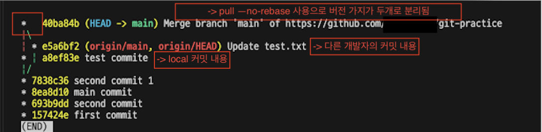2-1) git pull --no-rebase