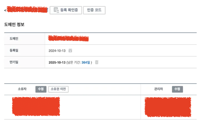 - [가비아 > 도메인 관리 페이지] 에서 변경하려는 도메인 선택