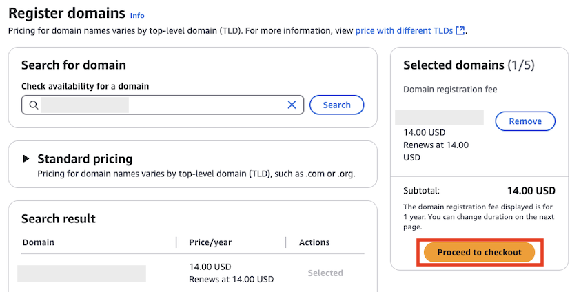 원하는 도메인을 검색 후 선택.