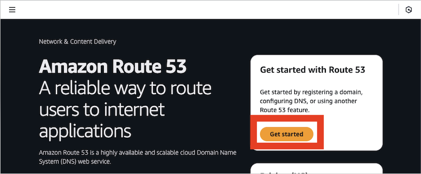[aws Route 53 > Get started] 클릭